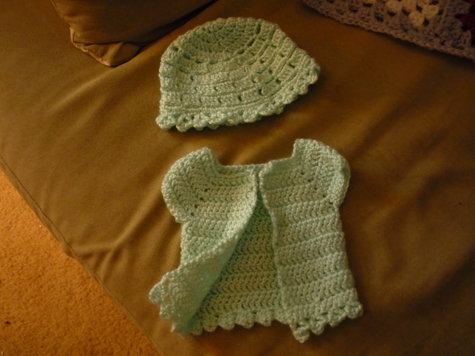 My sister is going to be having a baby in February, and so Ive started crocheting baby clothes for the first time. Baby booties are extremely hard to crochet, Ive found, if you can find me an easy pattern and explain it to me then I will try again. For now Ive just given up! But Ive made great progress in crochet, making a baby hat and coat. The sleeves in the pattern just werent working out for me however, and I decided to leave them off. The jacket is adorable even without the sleeves. I made some changes in the pattern, just in adding the trim to the bottom of the coat. The coat isnt exactly finished either, I need to add the collar and I might trim the sleeves. Here is a picture.